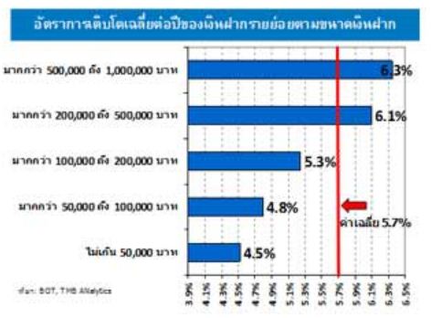 มีอัตรา การเพิ่มของยอดเงินฝากโดยเฉลี่ยเพียงร้อยละ 5.7 ต่อปี
