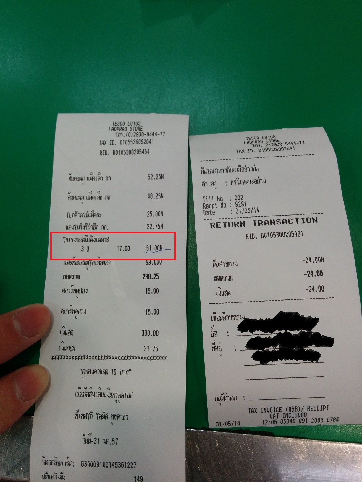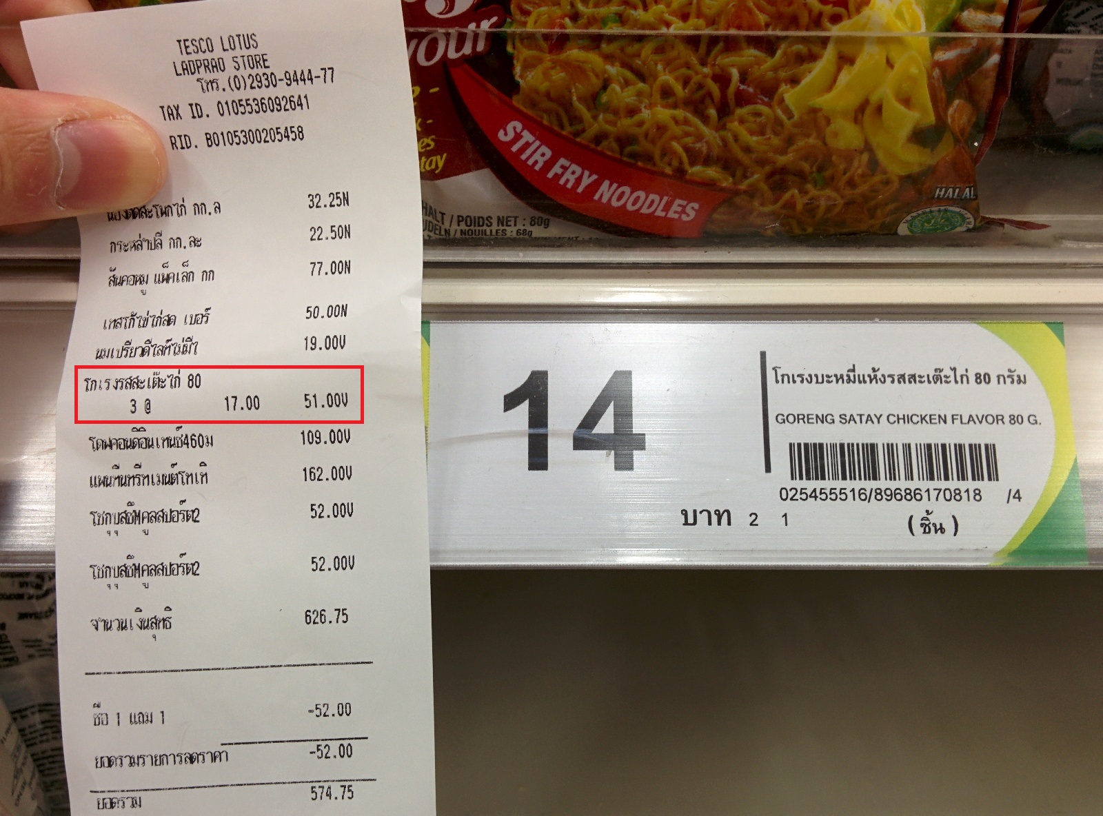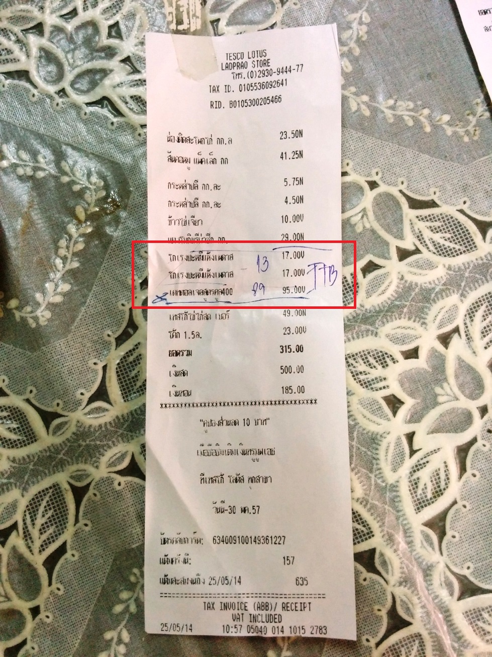 ตรงกับป้ายราคาแน่นอนคือ 14 บาท ไม่น่ามีอะไรแล้วล่ะ แต่พอไปคิดเงิน ก็เหมือนเดิมอีกแล้ว คิด 17 บาท
