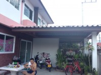 เป็นหมู่บ้านจัดสรรมีพื้นที่เหลือในบริเวณบ้าน จะลงทำโรงจอดรถแยกกับตัวบ้าน ลงเสาเทพื้นทำหลังคาแยกกับตัวบ้าน ชิดกำแพงด้านข้าง แต่บนหลังคาจะเทพื้นคอนกรีตแล้วกั้นลูกกรงกันตก ทำบันไดขึ้นไปใช้สอยพื้นที่บนหลั