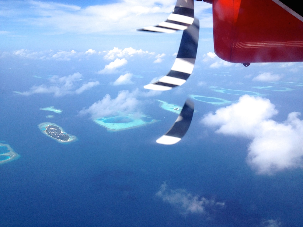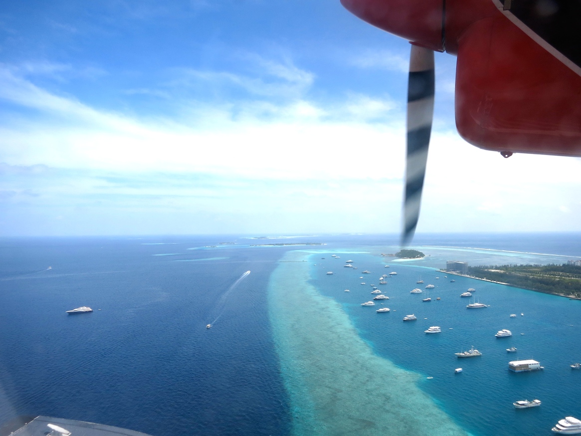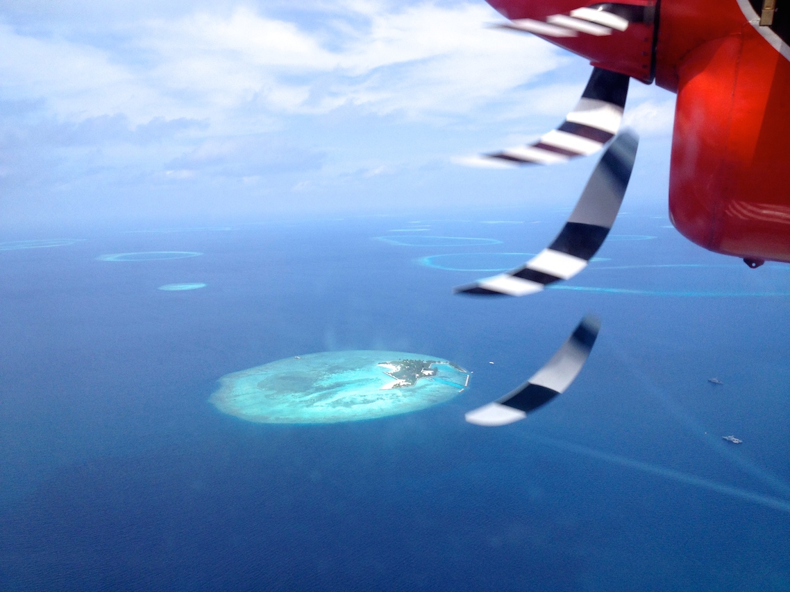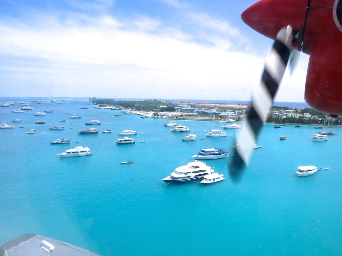 บอกเลยว่าตอนนั้นแอบเสียใจนิดนึงว่า อุตส่าไปถึงมัลดีฟแล้วแท้ ๆ แต่คงไม่มีโอกาสได้นั่งเครื่องบินน้ำที่ใคร ๆ ก็บอกว่าถ้ายังไม่ได้นั่งคงไปไม่ถึงมัลดีฟ ตอนนั้นแอบเศร้าเพราะจากเกาะสนามบินไปเชอราตันนั้นนั่งสปีดโบ๊ทแค่ 20 นาที ตอนนั่งหาที่พักก็ทราบมาว่าค่าตั๋วเครื่องบินน้ำนี้ต้องจ่ายแยกต่างหาก ซึ่งราคาก็แอบโหดอยู่ คือ ตั๋วจะตกประมาณ $300-$600 ไป-กลับต่อคน เลยมาลงตัวที่เชอราตันเพราะค่านั่งสปีดโบ๊ทตกคนละ $80 แหะๆ