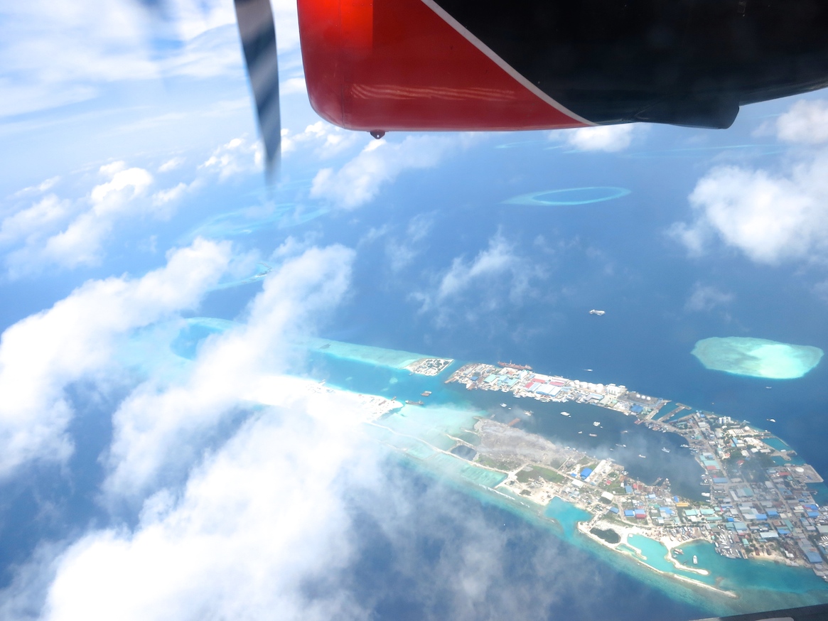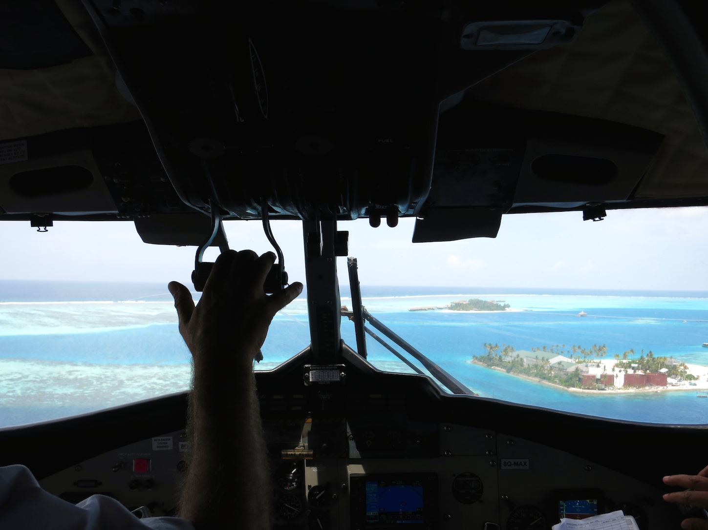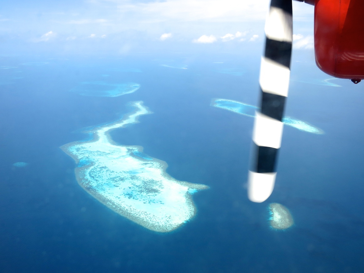 บอกเลยว่าตอนนั้นแอบเสียใจนิดนึงว่า อุตส่าไปถึงมัลดีฟแล้วแท้ ๆ แต่คงไม่มีโอกาสได้นั่งเครื่องบินน้ำที่ใคร ๆ ก็บอกว่าถ้ายังไม่ได้นั่งคงไปไม่ถึงมัลดีฟ ตอนนั้นแอบเศร้าเพราะจากเกาะสนามบินไปเชอราตันนั้นนั่งสปีดโบ๊ทแค่ 20 นาที ตอนนั่งหาที่พักก็ทราบมาว่าค่าตั๋วเครื่องบินน้ำนี้ต้องจ่ายแยกต่างหาก ซึ่งราคาก็แอบโหดอยู่ คือ ตั๋วจะตกประมาณ $300-$600 ไป-กลับต่อคน เลยมาลงตัวที่เชอราตันเพราะค่านั่งสปีดโบ๊ทตกคนละ $80 แหะๆ