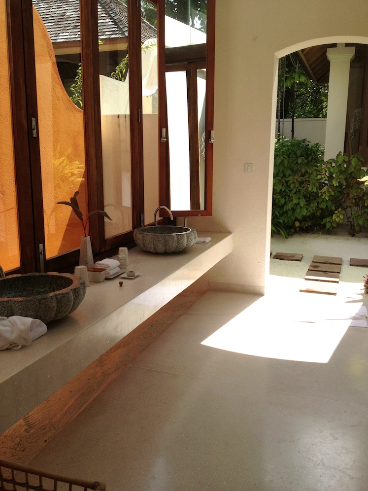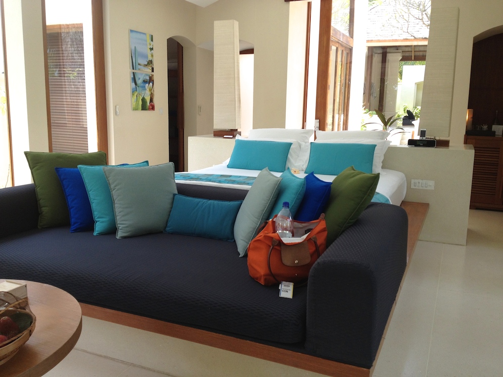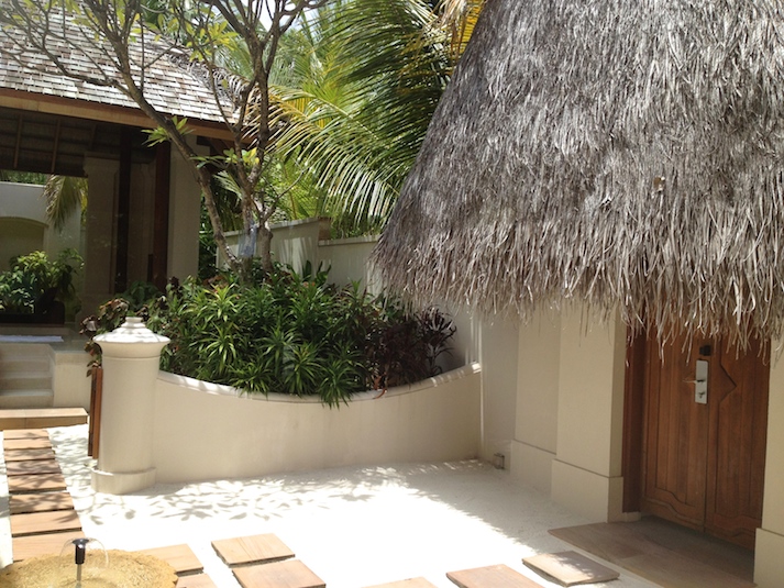 หลังจากเช็คอินเรียบร้อย พนักงานก็พาเราไปที่ห้องพัก ซึ่งสามีได้จองแบบ King Deluxe Beach villa ไว้ (รู้สึกจะเป็นห้องราคาเกือบถูกสุด เหอะๆ) เอาน่ะ แม้จะไม่ได้นอน Water Villa แบบคนอื่นเค้า แต่ได้แค่นี้ก็บุญโขแล้ว