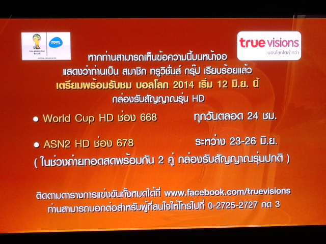 ที่บ้านมีแต่กล่องของ CTH และ คิดว่าคงไม่ซื้ออะไรกล่องใหม่ เพราะหมดบอลโลกก็คงไม่ดูพวกอาร์สยาม คามิคาเซ่หรอก ถ้าออกไปดูข้างนอก มีที่ไหนจัดงานบ้าง อย่างปีก่อนที่ลานพารากอน สนามศุภ ถนน ข้าวสารมีจอใหญ่ และ