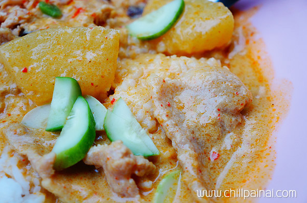 แกงกะหรี่แบบจีน เห็นมีหมู มีเนื้อ กินกับกุนเชียงไม่ก็ไข่ต้ม
