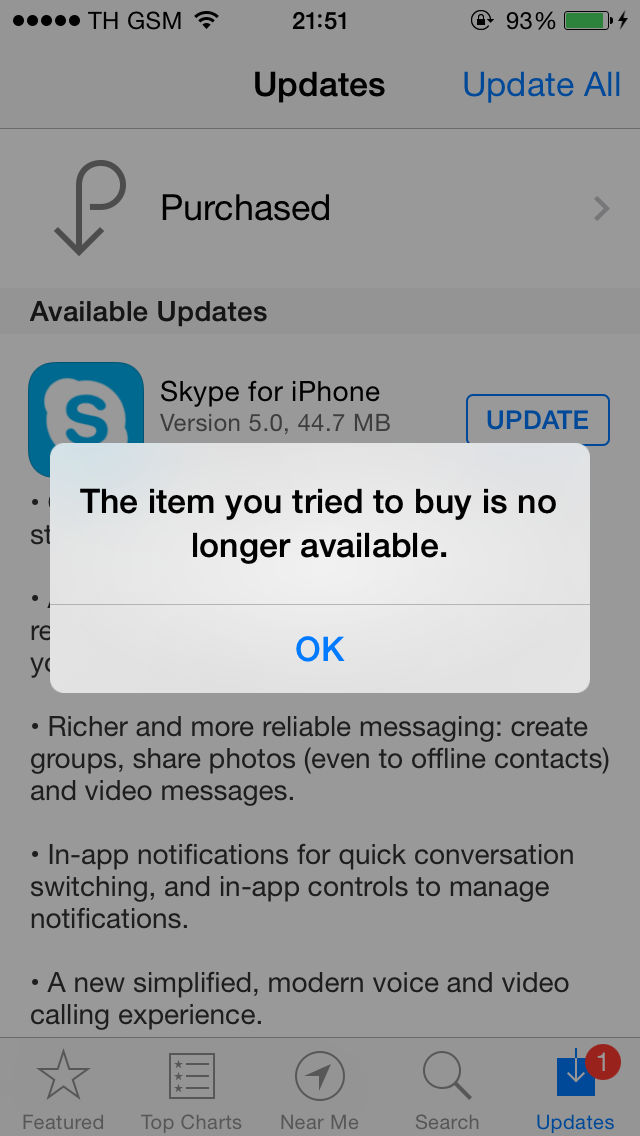 ผมจะอัพเดทแอป skype แล้วมันขึ้นตามภาพ แก้ยังไงครับ?