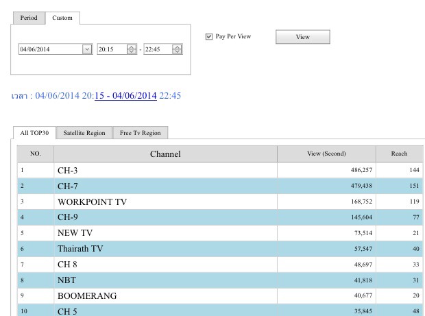 *** 10 อันดับเรตติ้งรายการสูงสุดของแต่ละสถานี ประจำวันที่ 23-29 มิถุนายน 2557 จาก Nielsen ***