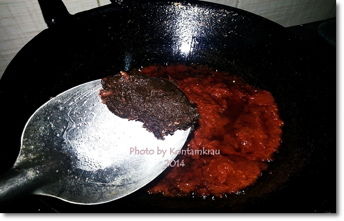 ผัดเข้ากันดีแล้ว เทลงหม้อน้ำแกง