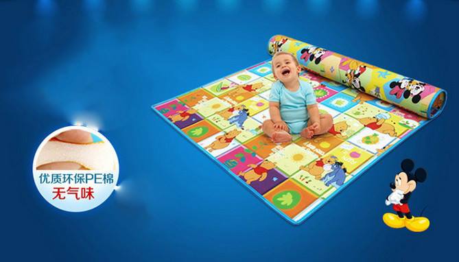 [ส่งฟรี] แผ่นรองคลาน ลายมิกกี้+หมีพูห์ 2ด้าน