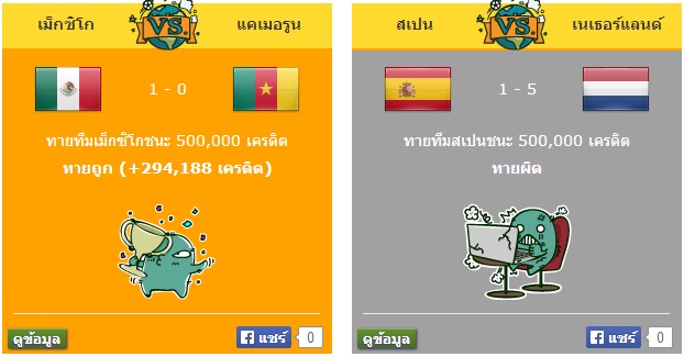 ออกตัวว่าลงสเปนไว้ ที่จริงก็เผื่อใจไว้ว่าอาจเเพ้ เเต่ไม่คิดว่าจะเเพ้เละขนาดนี้ ลงเครดิตไว้ 5 เเสน ถ้าเป็นเงินจริงนี่คงซี้ดๆๆๆๆๆๆ 555