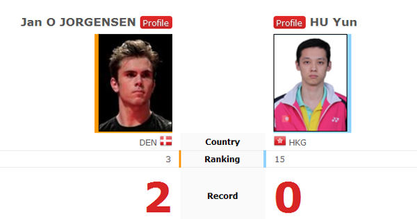 [MS] Jan O Jorgensen vs Yun Hu แข่งคู่ีที่ 4 โดยคู่แรกแข่งเวลา 10.00 น. คอร์ท 2 (TV)