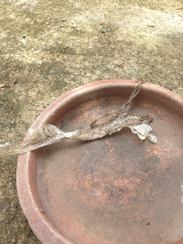 พอดีเมื่อวานคุณแม่เจออยู่สนามข้างบ้าน ไม่รู้ว่าเป็นคราบงูอะไร?? มีพิษหรือป่าว?? วานผู้รู้ช่วยบอกหน่อยค่ะ เพราะว่าต้องออกไปตากผ้าตรงนั้นทุกวันเลย