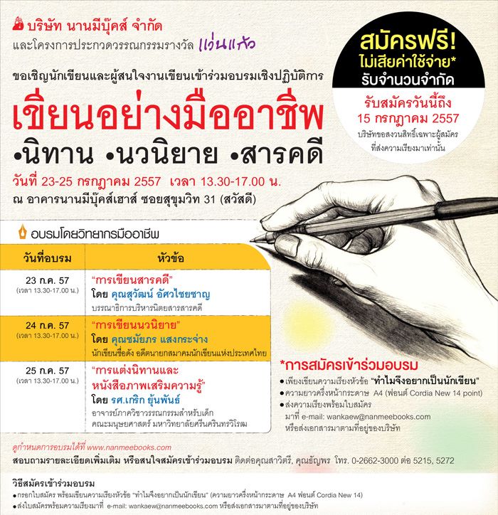 หากคุณสนใจเรียนเรื่องการเขียนนวนิยายเพิ่มเติม