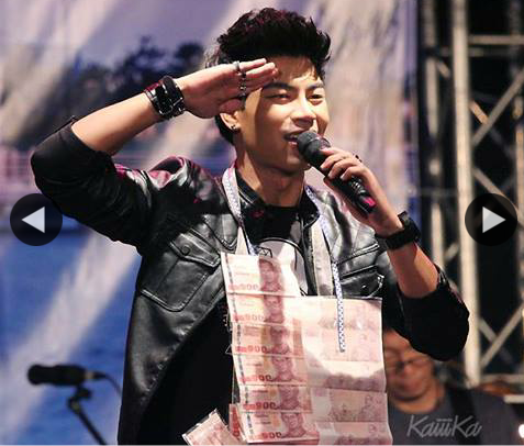 รวมเป็น 5000 และพวงมาลัยจากผู้ใหญ่อีก 3 พวง ตอนร้องเพลงทหารอากาศขาดรัก
