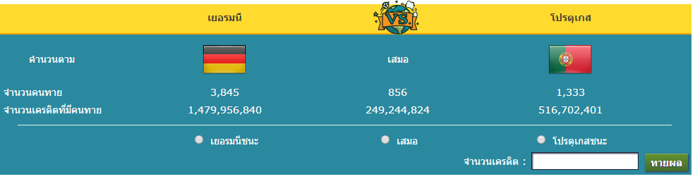 ผมเชียร์เยอรมันนะ 55 แต่จัดโปรตุเกสไปเพราะเหลือแสนนึงละ ฮ้อดูรัสทำพิษ