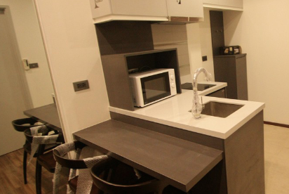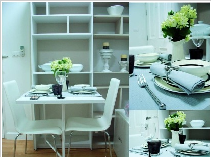 ที่มีห้องครัว โต๊ะทานข้าว ออกแนวสีขาวๆ