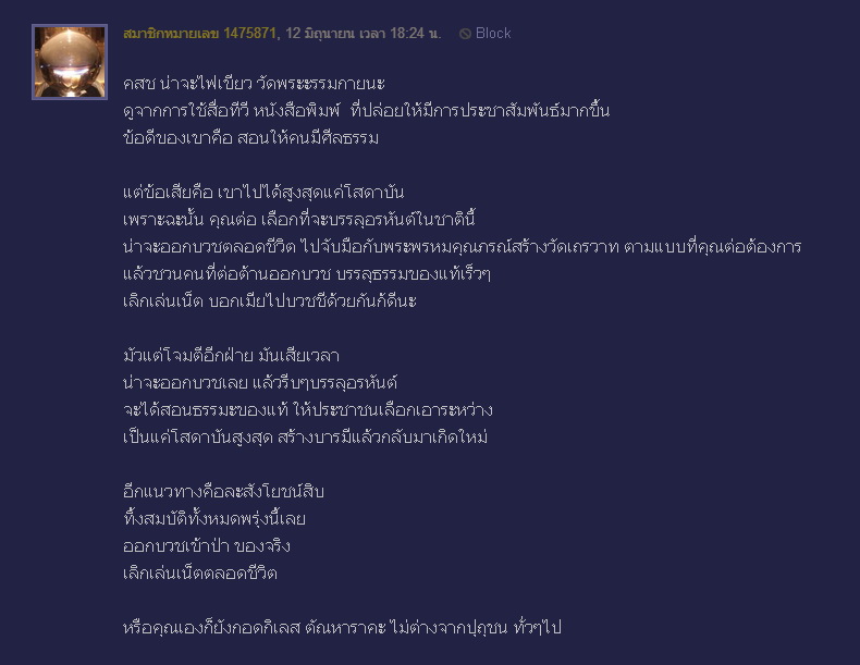 สมาชิกหมายเลข 1475871 บอกข้อเสียของวัดพระธรรมกาย