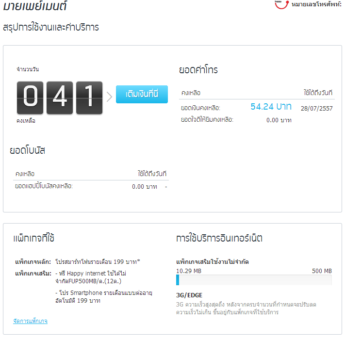 สมัคร package internet Happy 70 ชม. 199 บาท ครับ
