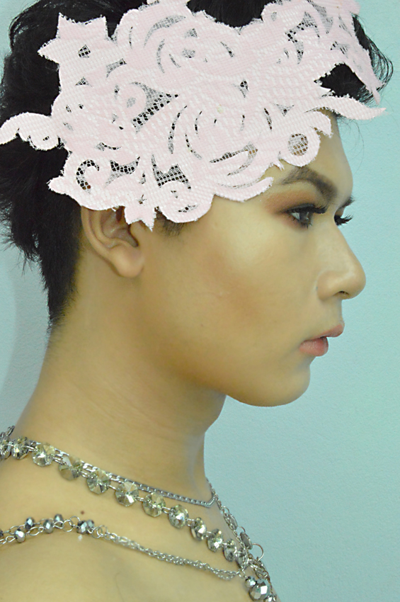 เซ็ตรองพื้นและผลิตภัณฑ์เนื้อครีมด้วยแป้งฝุ่น โดยการใช้แปรง (Tips: วิธีการลงแป้งให้เบา ดูเป็นธรรมชาติและไม่เป็นคราบ ให้ใช้แปรงในการลง โดยแทนที่จะใช้แปรงปัดๆ แต่ให้ใช้ด้านข้างของขนแปรงแตะแป้ง เคาะออกแล้วกลิ้งหัวแรงเบาๆ ให้ทั่วใบหน้า แค่นี้ก็จะดูเป็นธรรมชาติ และรองพื้นหรือพวกสีปัดแก้มที่ลงไว้ก่อนหน้าก็จะไม่ถูกปัดจนเป็นปื้นๆ) เมื่อลงแป้งเสร็จแล้ว ใช้อายแชโดว์สีชมพูอ่อนอมขาวนิดๆ เนื้อแมทท์ไฮไลซ้ำตามจุดที่ลงไว้ก่อนหน้า
