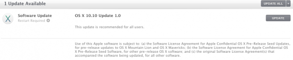 รายละเอียดในการอัพเดทนั้นแอปเปิลระบุไว้ว่าแนะนำให้ทุกคนได้อัพเดทแต่ไม่ได้บอกว่าอัพเดทอะไรบ้าง สำหรับผู้ที่ติดตั้ง OS X 10.10 Yosemite เวอร์ชั่นทดสอบสำหรับนักพัฒนาไว้ สามารถเข้าไปอัพเดทได้ที่ Mac App Store เลือกไปที่อัพเดทกันได้เลยครับ สำหรับการอัพเดทนั้นจะต้องมีการรีสตาร์ทเครื่องด้วยนะครับหลังจากที่อัพเดทแล้ว หากมีรายละเอียดของความเปลี่ยนแปลงจะรายงานให้ทราบกันอีกครั้ง