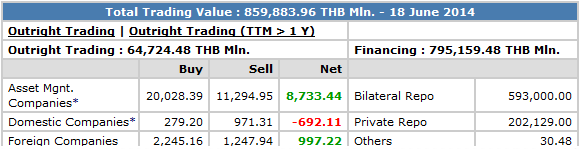 ตามประเภทนักลงทุน ประจำวันที่ 18 มิถุนายน 2557 ดังนี้