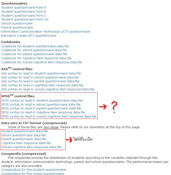 ลองเข้าไปดูหน้าที่ดาวน์โหลดอีกครั้ง นอกจาก Text file ยังมี SPSS control files ให้ แต่ผมก็ไม่เข้าใจว่ามันคืออะไร เอาไปไว้ทำอะไร
