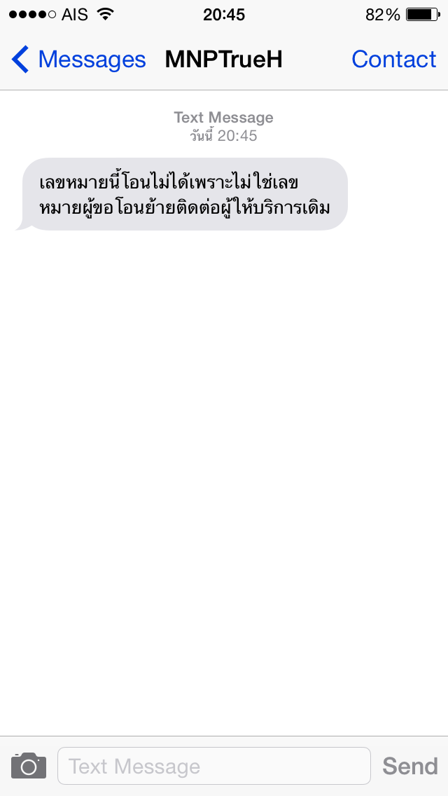 วันก่อนได้ sms จากทรูแจ้งว่า ผูู้ให้บริการรายเดิมปฏิเสธการโอนย้ายโดยแจ้งว่าข้อมูลไม่ครบถ้วน AIS มามุขนี้อีกแล้ว ผมเคยจะย้ายทีนึงก็อ้างว่าซิมลงทะเบียนไม่ครบ พอไปศูนย์ ทางศูนย์กลับบอกข้อมูลครบถ้วน แล้วก