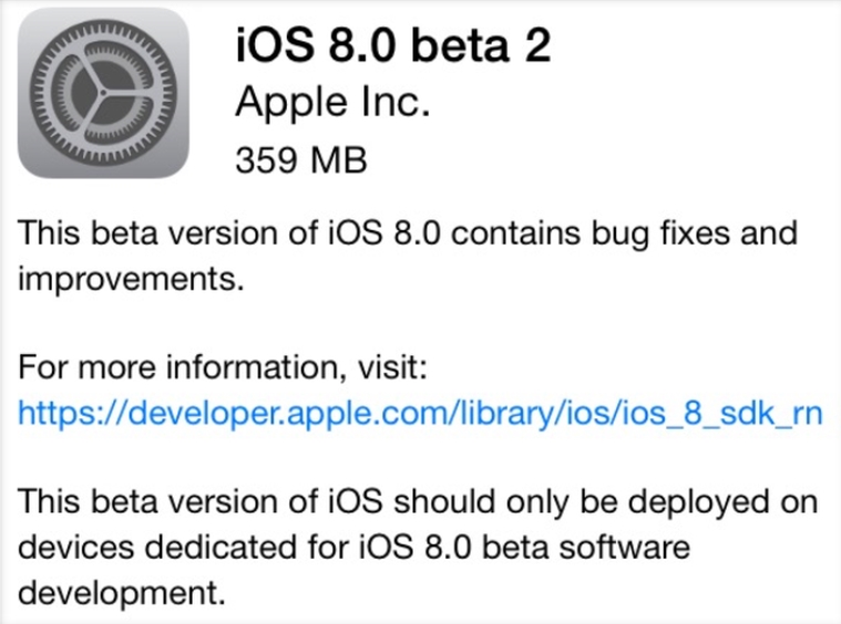 หลังจากที่เบต้าตัวแรกออกมาพร้อมข้อบกพร่องจำนวนมาก ล่าสุด แอปเปิ้ล ได้ปล่อยการอัพเดตตัวที่สองของ iOS 8 ไปยังนักพัฒนาแล้ว