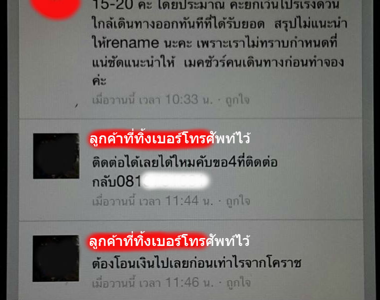 ตัวอย่างเช่น ผู้สนใจทัวร์รายนี้ ต้องการซื้อทัวร์ และเผลอโพสต์เบอร์โทรศัพท์ไว้บนหน้า wall