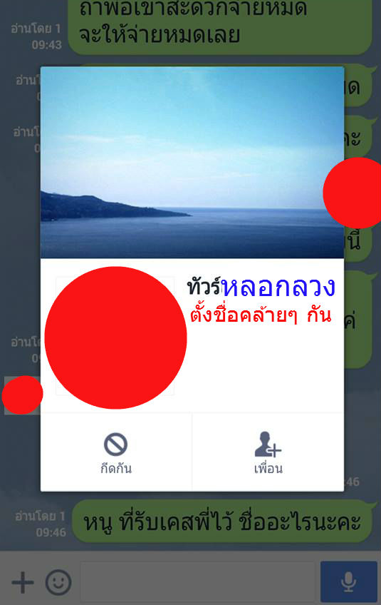 ซึ่งเป็นไลน์ปลอมๆ ที่อาจทำหน้าจอเหมือนกับไลน์ที่เป็นของบริษัททัวร์นั้นๆ (อาจมีการเอาโลโก้บริษัททัวร์นั้นมาใส่ จนแทบดูไม่ออก !!)