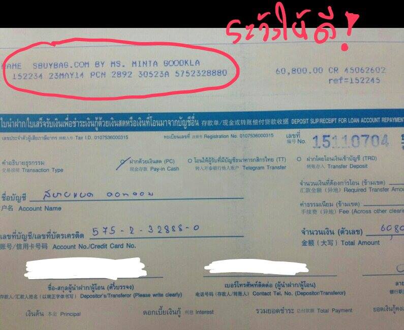 โปรดระวังการโอนเงินไปยังบัญชีมิจฉาชีพชื่อ