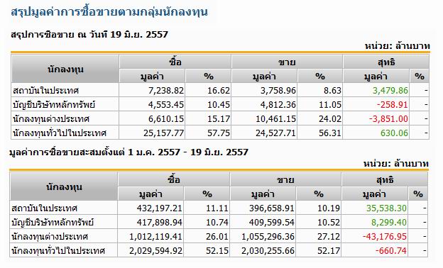 20/6/2557 กำลังยังสูสี : ดัชนีจะผันผวน แนวโน้มอ่อนตัวลง