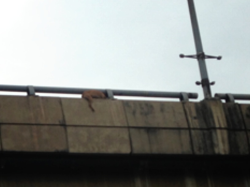 ช่วยด้วยค่ะ. น้องหมานอนอยู่ตรงราวสะพาน ข้ามแยกอรุณอัมรินทร์