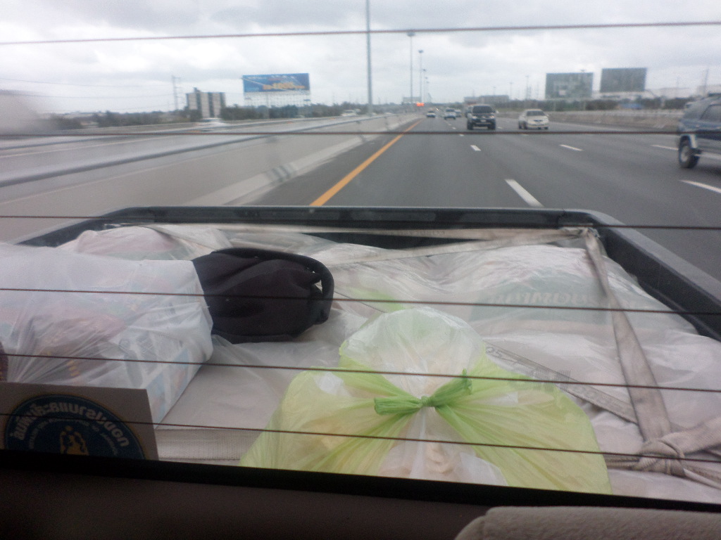 หลังรถเรามีทั้งข้าวสาร มาม่า ปลากระป๋อง น้ำดื่ม ที่เพื่อนๆร่วมกันบริจาคค่ะ