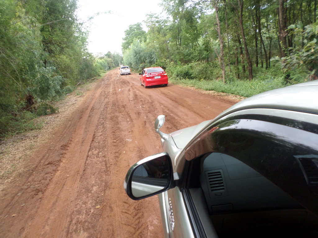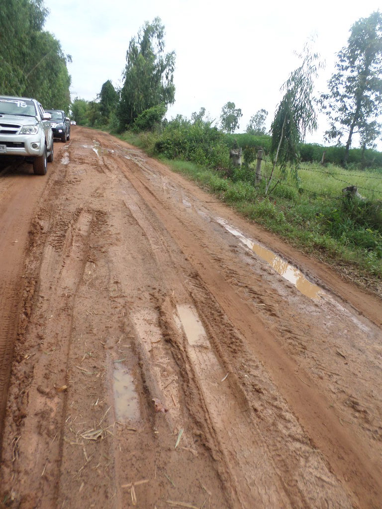 ถนนที่จะสามารถเดินทางเข้าวัดได้ค่ะ เป็นถนนดินแดง ประกอบกับเมื่อคืนมีฝนตกหนักด้วย ถนนจึงเป็นแบบที่เห็นค่ะ