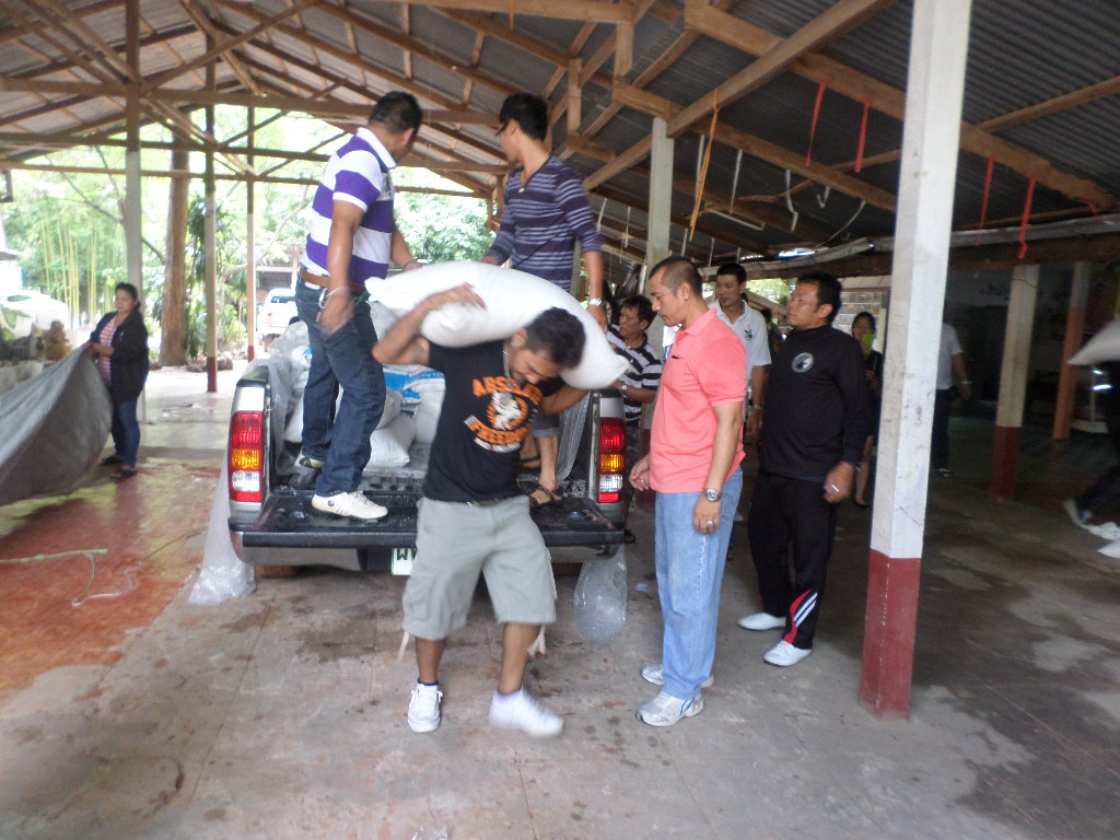 พี่ๆผู้ชาย ช่วยกันแบกข้าวสารทั้งหมดลงจากรถ ส่วนผู้หญิงก็ช่วยถือของเบาๆลงค่ะ