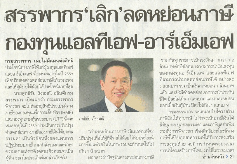 สรรพากรพิจารณาเลิกลดหย่อนภาษีด้วย LTF