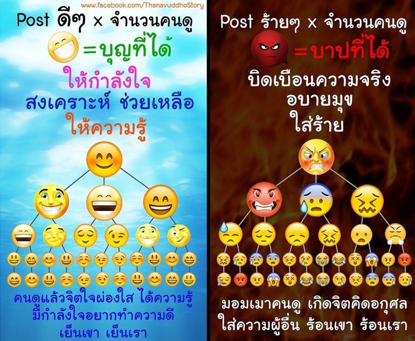 ยิ่งถ้ามีฝ่ายหนึ่งเริ่มก่อน ก็ยิ่งไม่มีใครอยากยอมใคร อาจเพราะด้วยการเล่นเน็ต เราสามารถพิมพ์คุยโดยที่ไม่เห็นหน้าค่าตา คนเราก็ยิ่งพิมพ์โดยไม่ต้องเกรงใจกันมากขึ้น หรืออาจเป็นเพราะเราได้เสรีภาพมากเกินไป เราเลยเริ่มไม่ชินกับการที่จะโดนใครขัดแย้งความคิดไรต่างๆ ก็เลยเป็นต้นเหตุให้รู้สึกว่าอยากโพสธรรมะ รวมถึงนำแง่คิด ประสบการณ์ของตัวเองมาเป็นแบบอย่างเพื่อเตือนใจกับการเสพข่าวดารา บันเทิง