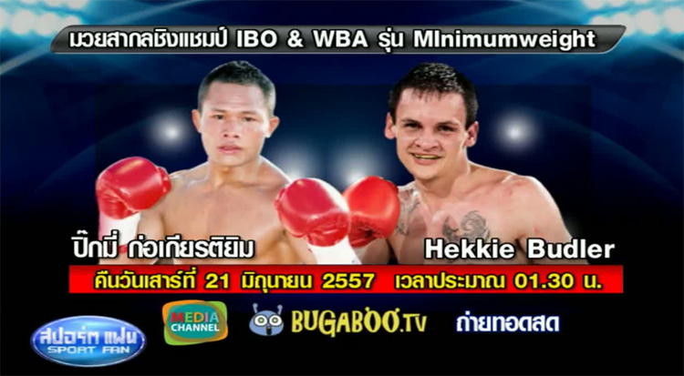 คืนพรุ่งนี้.!! Bugaboo.tv - Media Channel ถ่ายทอดสดมวยสากลชิงแชมป์ IBO & WBA รุ่น Minimumweight เฮกกี้ บัดเลอร์ vs ปิ๊กมี่ ก่อเกียรติยิม เริ่มถ่ายทอดเวลา 00.30 น. ร่วมชมโดยพร้อมเพรียง