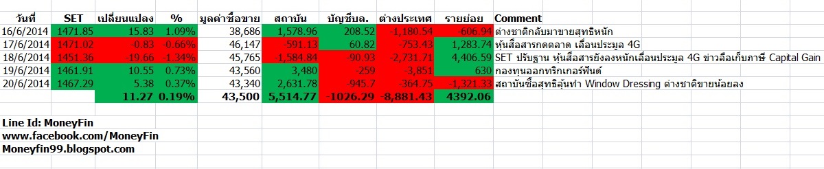 สรุปภาพรวมตลาดหุ้นไทย 16-20 มิถุนายน 2557