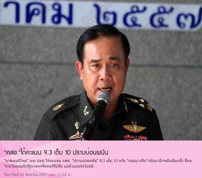 http://www.dailynews.co.th/Content/politics/246859/_%E0%B8%84%E0%B8%AA%E0%B8%8A._%E0%B9%84%E0%B8%94%E0%B9%89%E0%B8%84%E0%B8%B0%E0%B9%81%E0%B8%99%E0%B8%99+9.3+%E0%B9%80%E0%B8%95%E0%B9%87%E0%B8%A1+10+%E0%B8%9B%E0%B8%A3%E0%B8%B2%E0%B8%9A%E0%B8%9A%E0%B9%88%E0%B8%AD%E0%B8%99%E0%B8%9E%E0%B8%99%E0%B8%B1%E0%B8%99