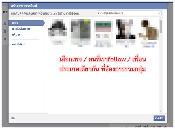 3. เลือกเพจที่ต้องการรวมกลุ่มกัน เช่น กลุ่มเพจหนัง กลุ่มเพจละคร เป็นต้น
