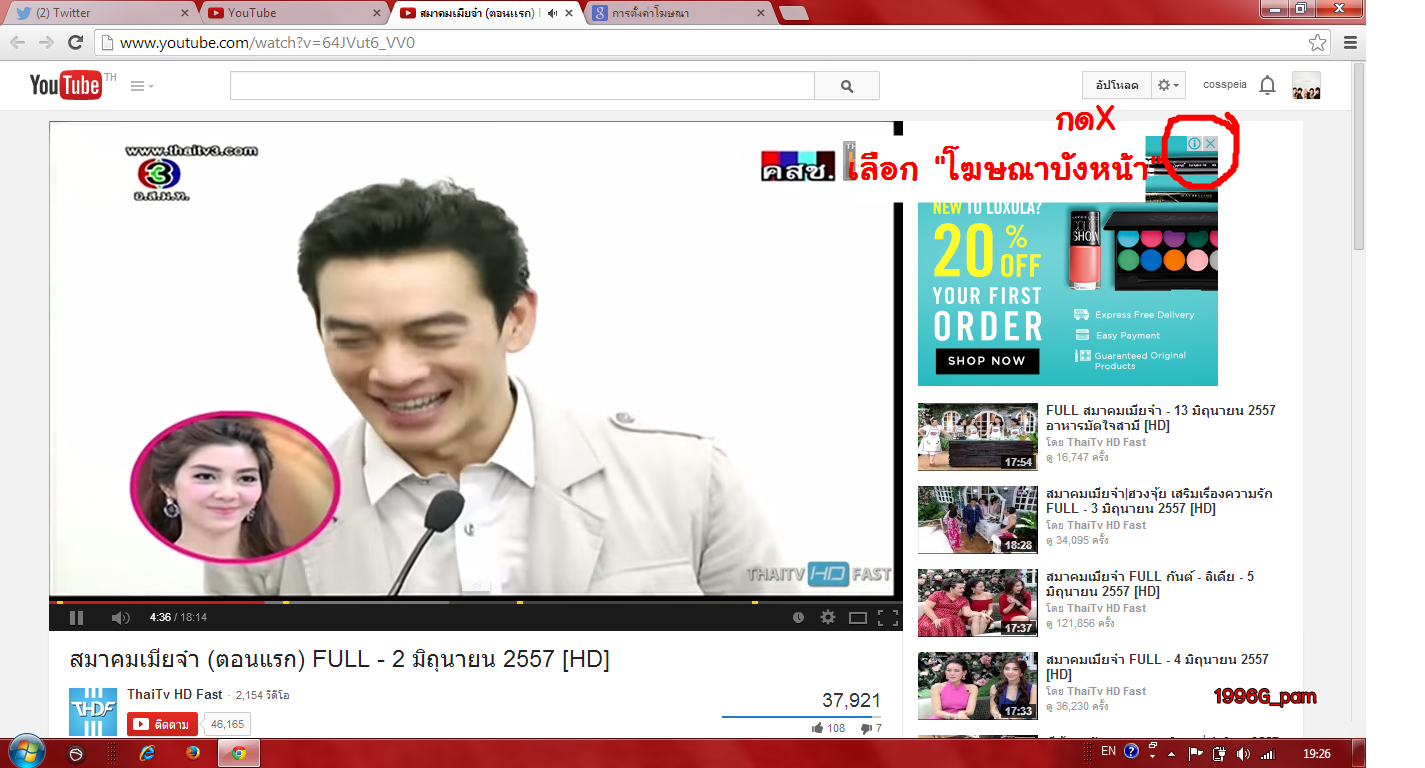 เป็นปัญหากันมาสักพักกับโฆษณาที่เยอะเหลือเกินในยูทูป ดิฉันซึ่งก็เป็นคนหนึ่งที่รำคาญเหลือเกิน ระหว่างที่ดูยูทูปอยู่เลยลองๆทำดู ปรากฏว่าได้ผลค่ะลองเปิดคลิปอื่นดูอีก5-6คลิปไม่มีโฆษณาขึ้นมาอีกค่ะ
