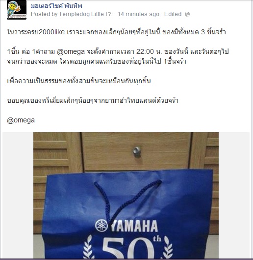-=:+:แจกของเล็กๆน้อยๆในโอกาสครบ 2000 likes แฟนเพจมอเตอร์ไซค์พันทิพ:+:=-