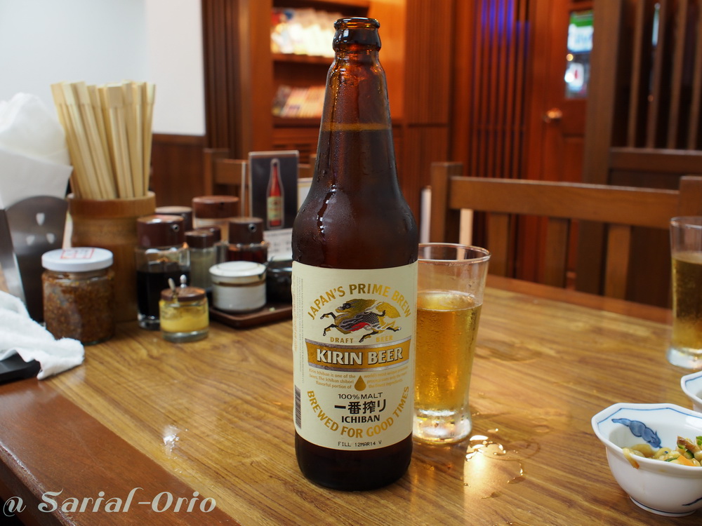 เบียร์อีกตัวหนึ่งคิดว่าคนไปร้านอาหารญี่ปุ่นคงได้กินกันบ่อยคือ “คิริน” เบียร์ที่รสไปทางหวานนิดๆ (ขวดใหญ่ 140 บาท)