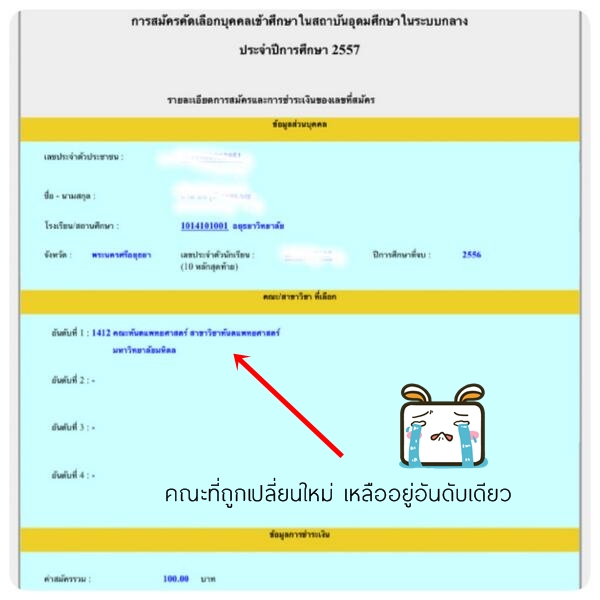 นี่เป็นคณะที่ใครไม่รู้เข้ามาสมัครใหม่ทับไปใยใบที่ 2 ซึ่งเป็น 4 อันดับที่จงใจแกล้งมากๆ