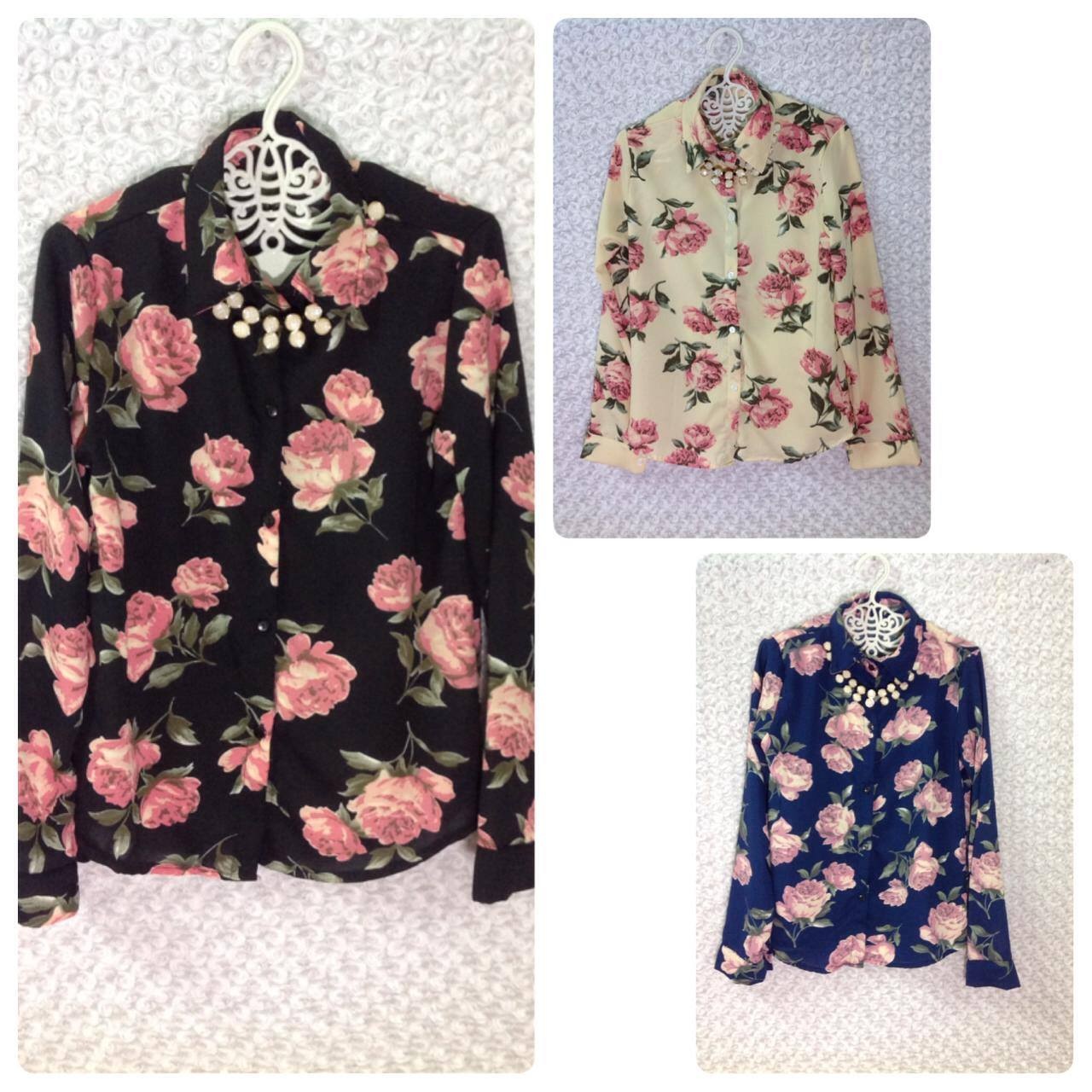 เชิตลายดอกวินเทจมี 3 สี 100฿