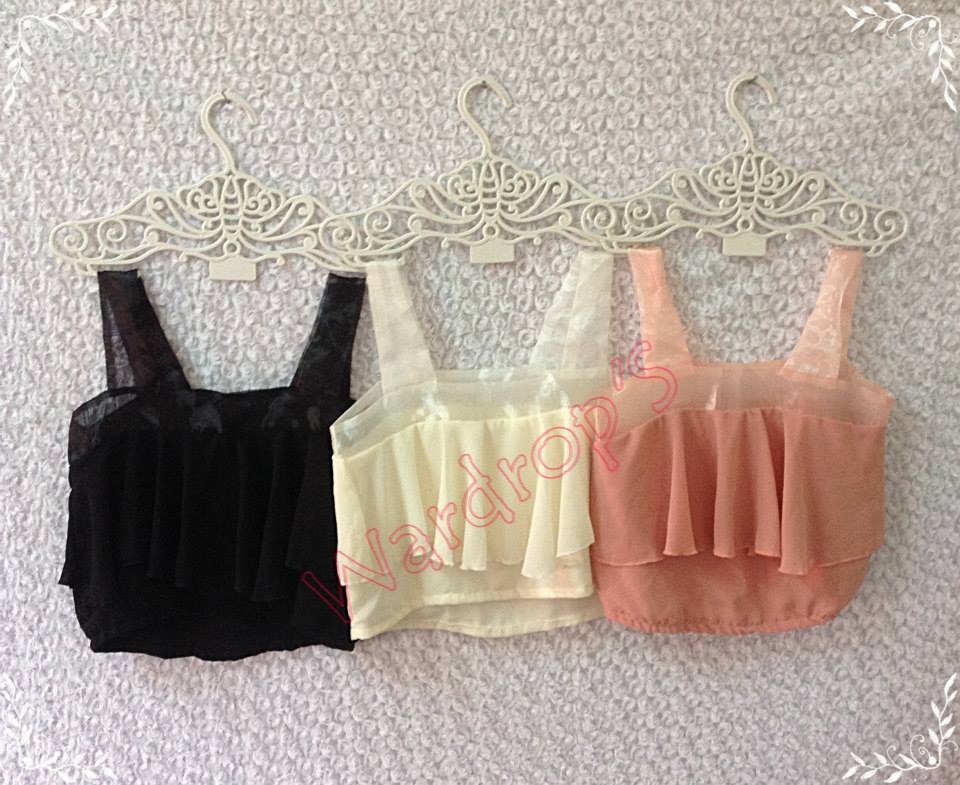 สายเดี่ยวครอปแต่งระบาย มี 2สี 100฿