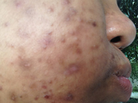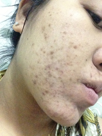 เสดก็สิวก็เริ่มเยอะขึ้นเรื่อยๆอะ เราก็กดบีบ แต่หน้าขาวนะ ตอนนั้น บีบกดจนเป็นแผลเป็นเต็มหน้า โหดมาก เหมือนระเบิดลง เป็นอยู่สักพัก ไม่รู้ซวยซ้ำซวยซ้อนอะไร พ่อเห็นจนทนไม่ได้ หน้าลูกเป็นอะไร เลยพาไปหาหมอ คือจะบอกว่า คลินิคนี้ขอพูดหน่อยนะค่ะ