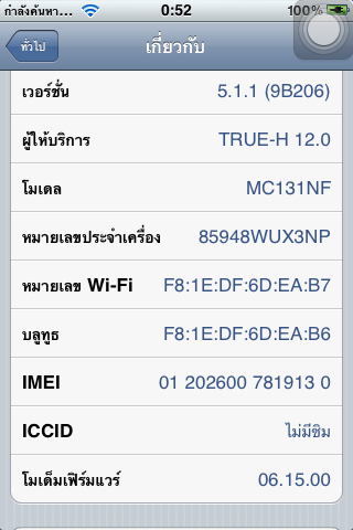 ก่อนหน้านี้เป็น 6.1.2 ใช้ได้ปกติ แล้วอัพเป็น 6.1.6 ก็ติดล็อค (ใช้ redsn0w ไม่เห็นจะได้) เลยดาวน์เกรดมาเป็น 5.1.1 (เก็บค่า shsh ถึงแค่ 5.1.1 ครับ)