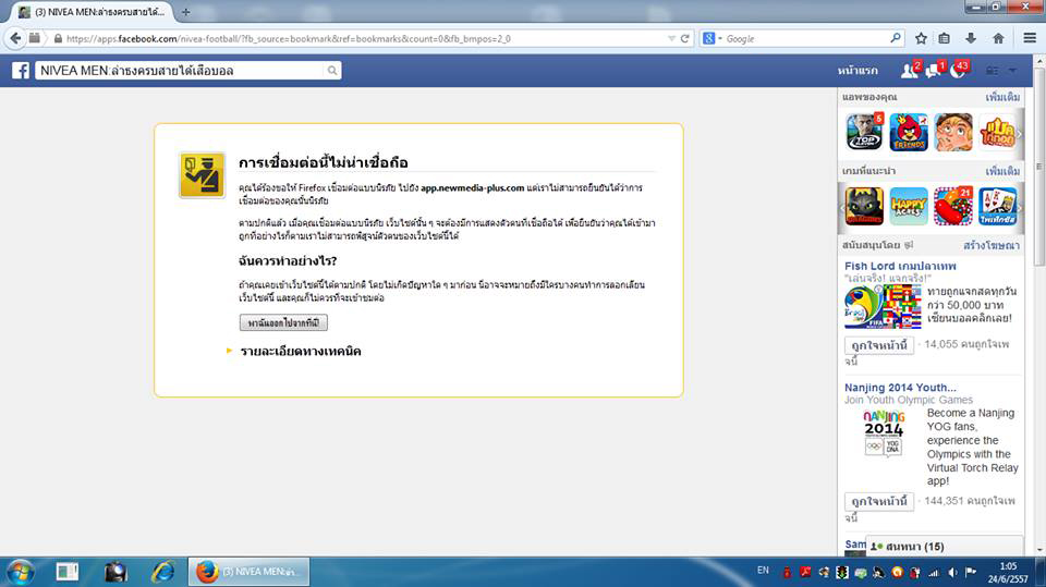 เล่น app นีเวีย ใน facebook ไม่ได้ทั้ง firefox และ chrome ครับ